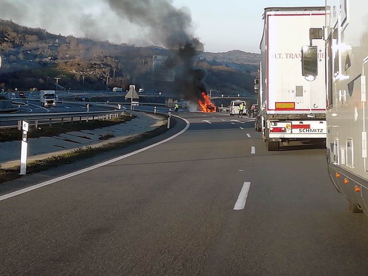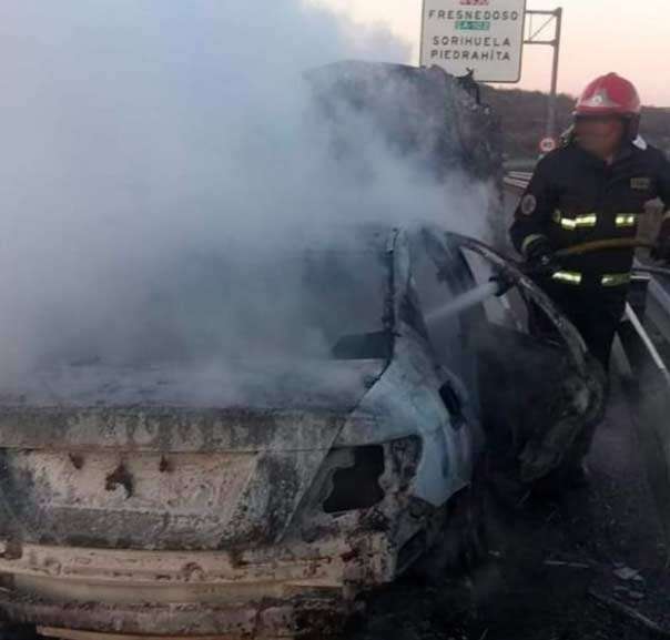 El incendio de un vehículo, ocurrido alrededor de las 17:45 horas en la autovía A-66, en el kilómetro 404 a su paso por el término municipal de Fresnedoso, ha obligado al corte del carril derecho de circulación, en sentido Salamanca.