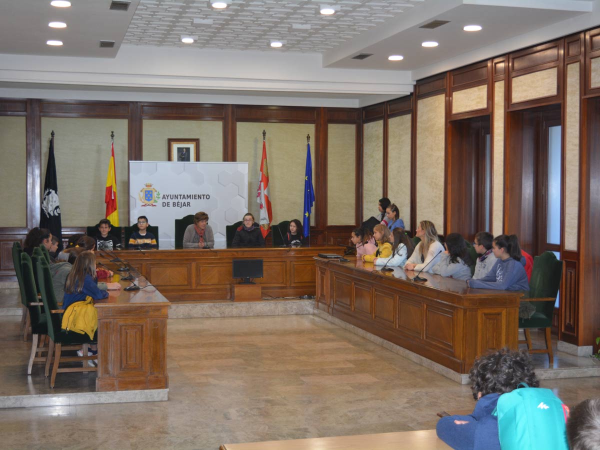 Los escolares de todos los colegios de Béjar han tenido a la alcaldesa como guía para explicarles el funcionamiento municipal para celebrar el Día de la Constitución
