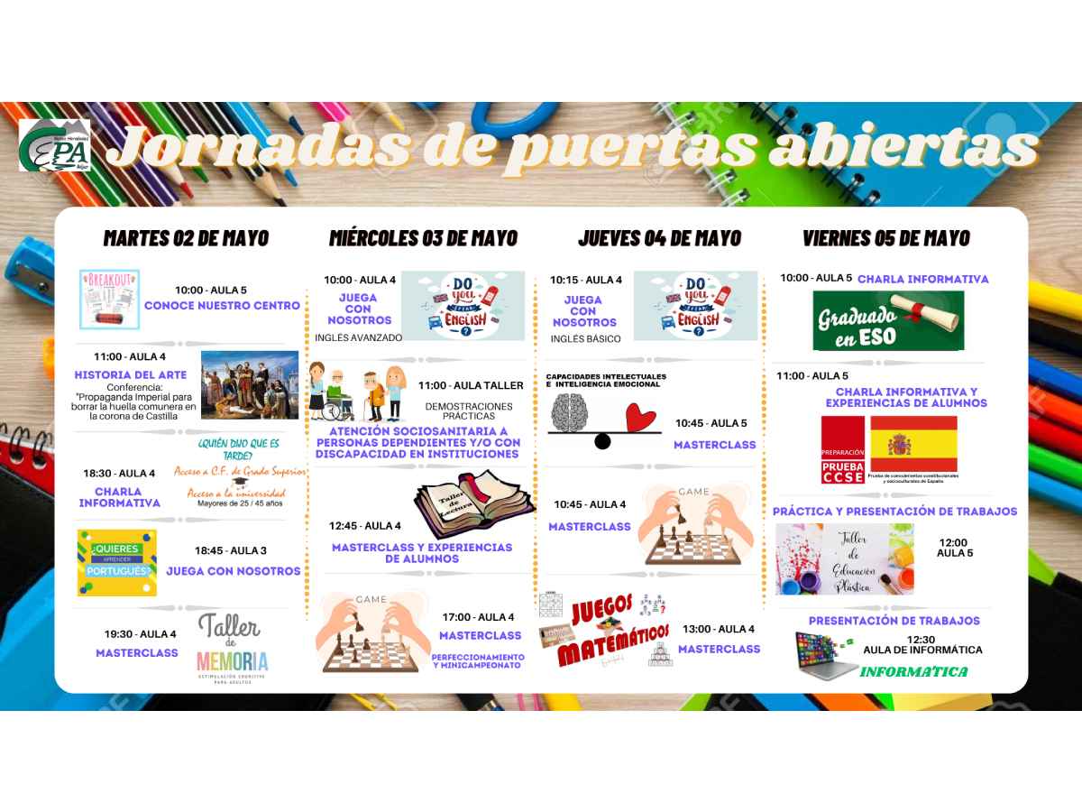 El Centro de Educación de Personas Adultas "Mateo Hernández" va a celebrar una Jornada de Puertas Abiertas que se llevará a cabo del 2 al 5 de mayo en sus instalaciones situadas en la calle San Antonio de Texas, 2.