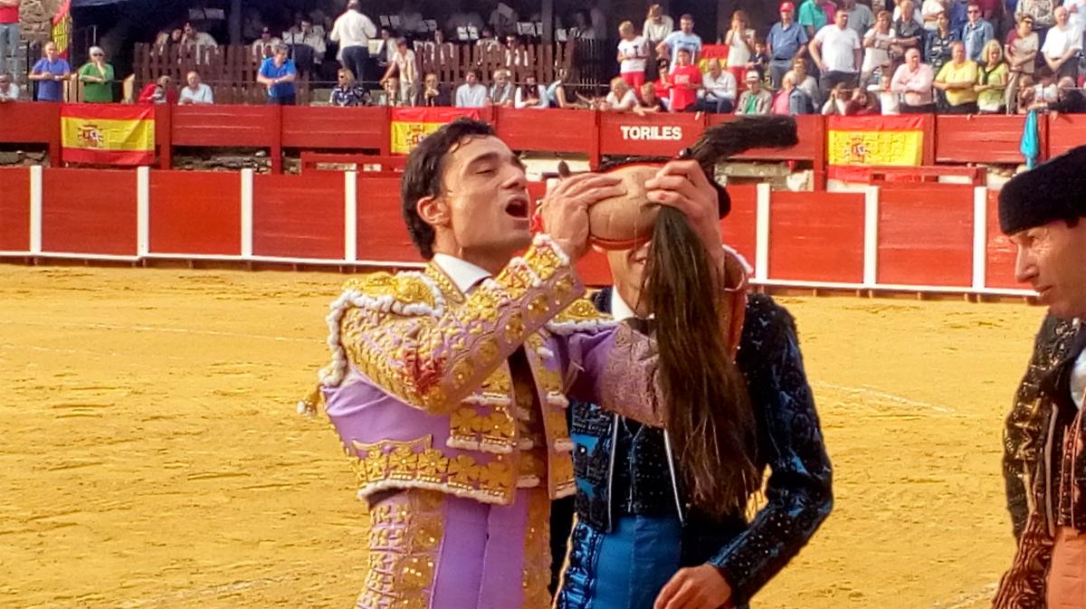 El Capea inició con muchas ganas su primer toro que remató con dos orejas. En su segundo toro, el diestro sufrió un pequeño susto que encendió los ánimos del torero quien finalizó la actuación cortando una oreja.
