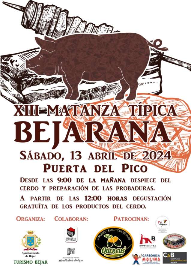 Este sábado, 13 de abril, a las 9:00 h, Béjar se prepara para acoger la decimotercera edición de su Matanza Típica Bejarana, un evento que arrancará con el tradicional despiece del cerdo y la preparación de las probaduras en la emblemática Puerta del Pico. Desde las 12:00 h, vecinos y visitantes tendrán la oportunidad de degustar gratuitamente los productos derivados del cerdo, en una jornada que promete ser un encuentro festivo y de reencuentro con las raíces culturales de la región.
