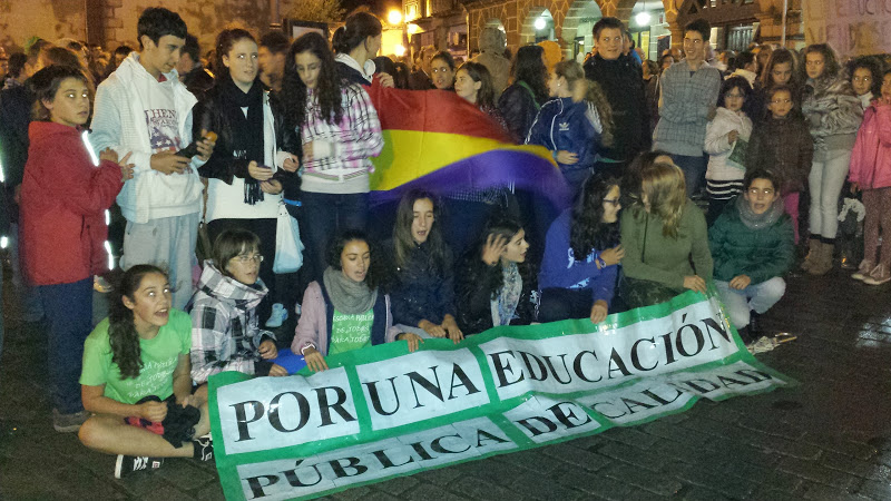 Las consignas contra la Ley de Educación y los recortes acompañaron a los manifestantes desde la plaza de Santa Teresa hasta la Plaza Mayor donde los jóvenes estudiantes leyeron un manifiesto. "La LOMCE elimina la igualdad de oportunidades, disminuye las funciones y la participación de la comunidad educativa en el Consejo Escolar, vulnera derechos fundamentales, por ser discriminatoria en cuanto que hace prevalecer la religión sobre cualquier otra materia relativa a valores sociales, culturales y éticos; mantiene los conciertos a centros que segregan por razón de sexo (un obstáculo para promover desde la escuela la igualdad); incluye reválidas o pruebas externas, e incorpora nuevos apartados referentes a las normas de convivencia y conducta que, entre otras medidas, pueden acarrear la expulsión temporal o definitiva del centro de los alumnos", manifiestan desde las organizaciones convocantes.