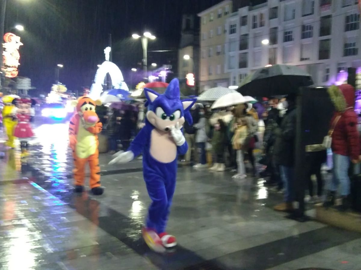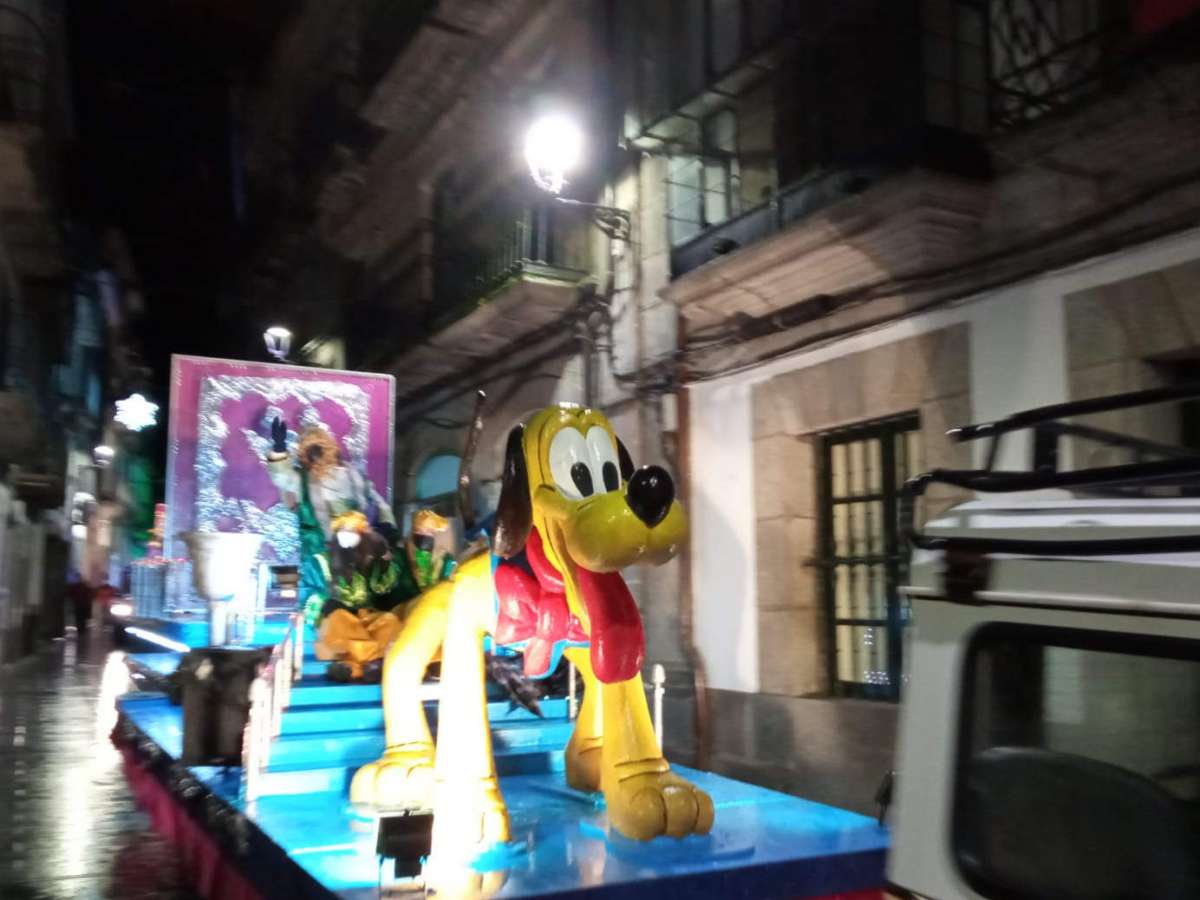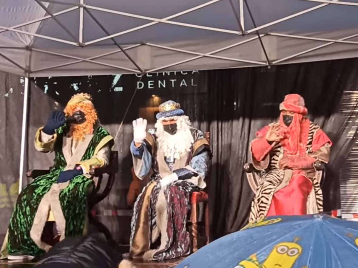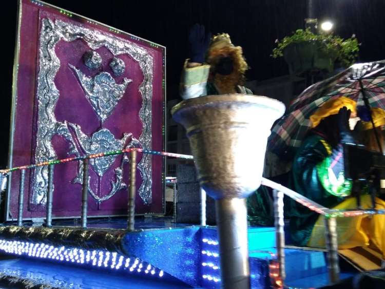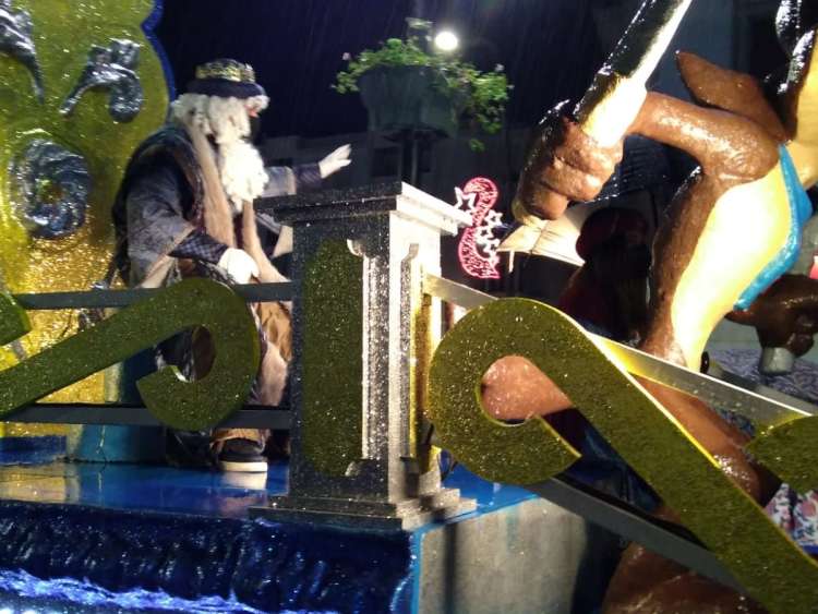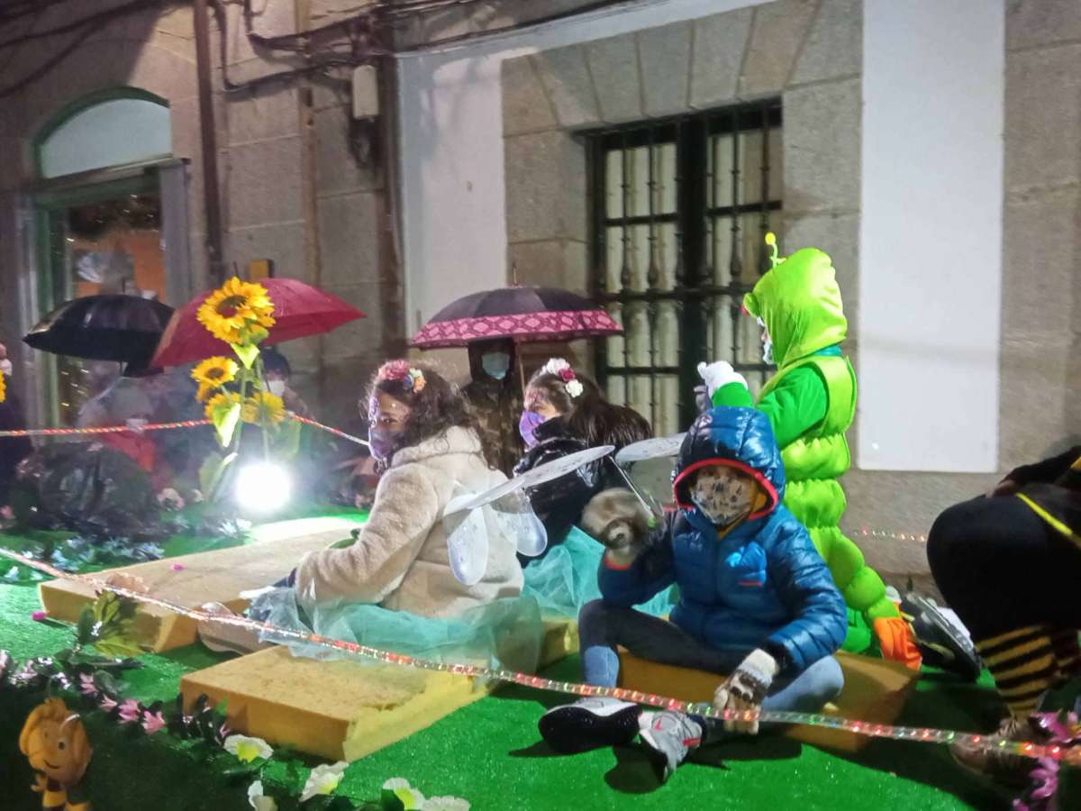 La lluvia acompañó durante casi la totalidad del recorrido —cayendo copiosa pero intermitentemente— a las peñas y colectivos que conforman la comitiva real en Béjar. Tal y como estaba previsto, sus majestades no pudieron lanzar caramelos a los niños y a los asistentes a la misma, como medida de precaución para evitar contagios.