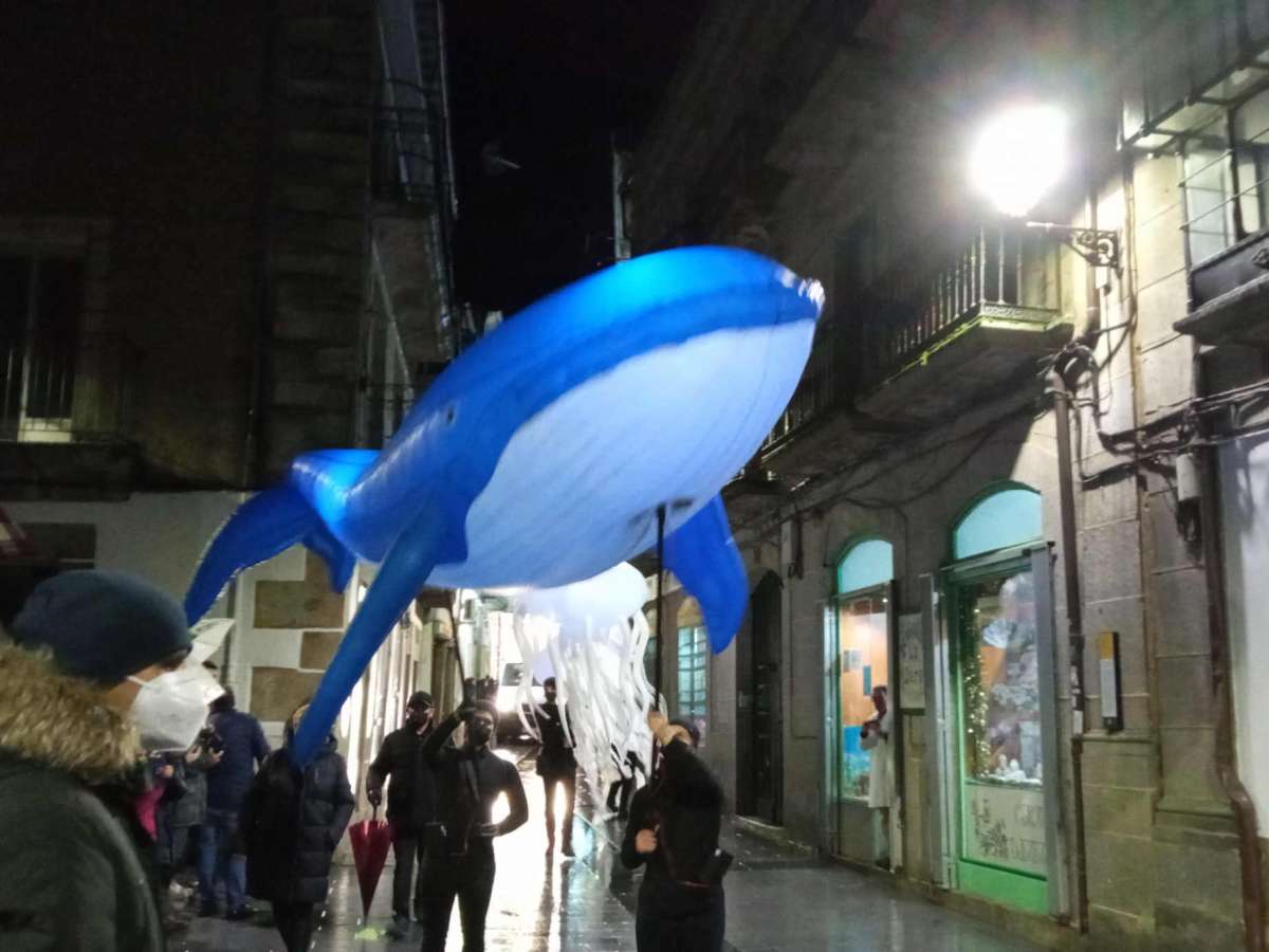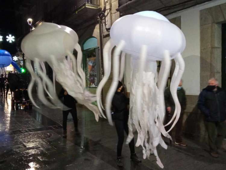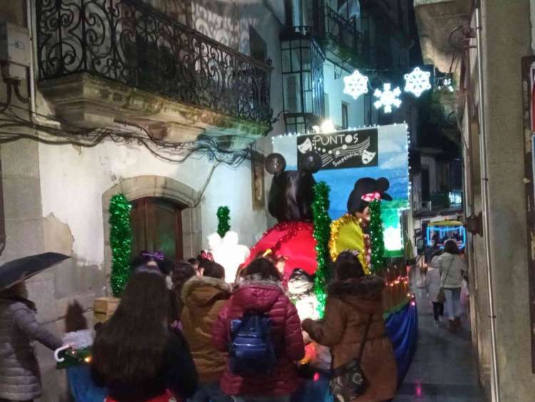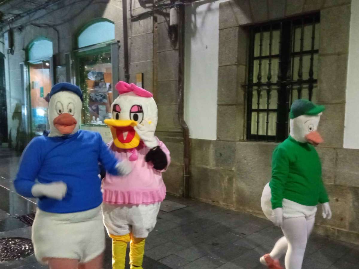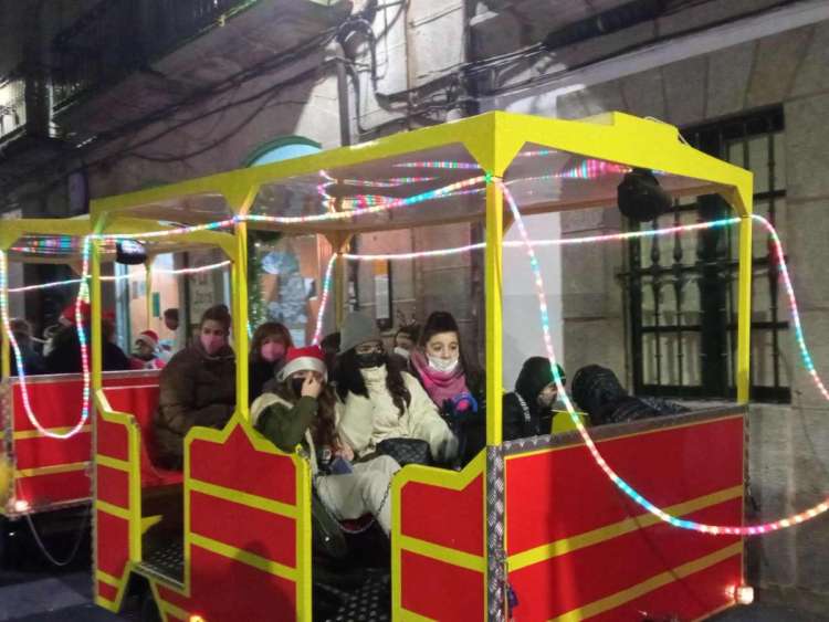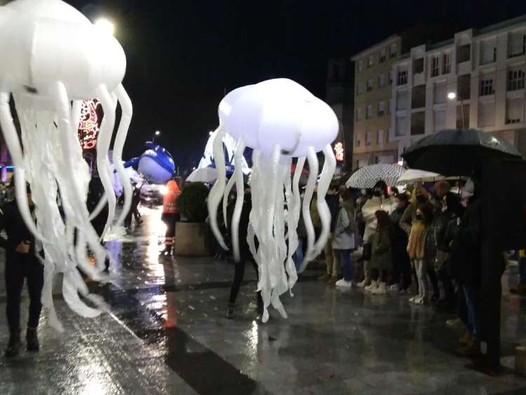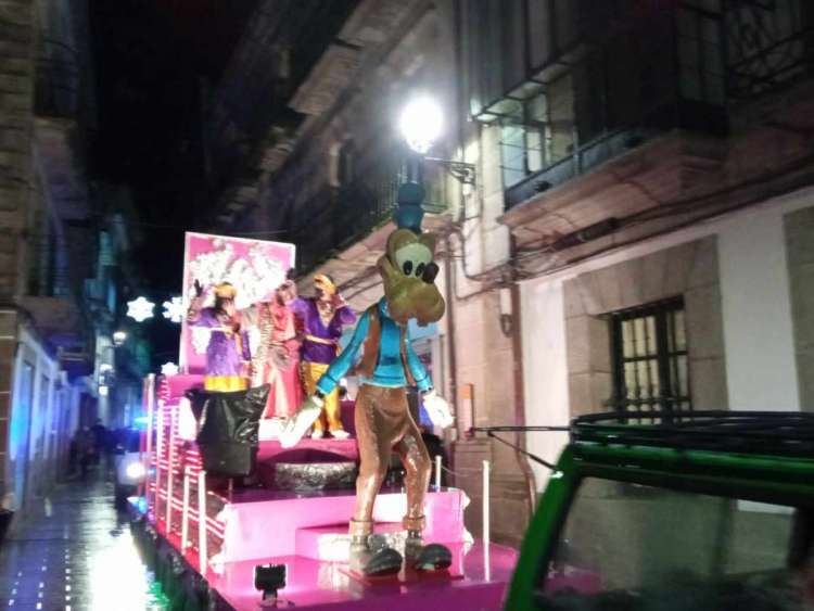 La lluvia acompañó durante casi la totalidad del recorrido —cayendo copiosa pero intermitentemente— a las peñas y colectivos que conforman la comitiva real en Béjar. Tal y como estaba previsto, sus majestades no pudieron lanzar caramelos a los niños y a los asistentes a la misma, como medida de precaución para evitar contagios.