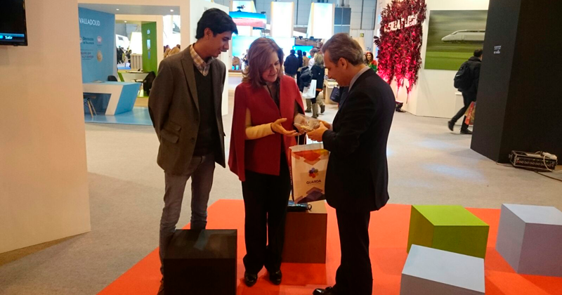 El concejal de Turismo de Béjar, Ángel Orgaz y la concejala de Cultura, Purificación Pozo se reunieron durante la feria de Fitur con el director de la Feria Internacional de Turismo de Guarda.