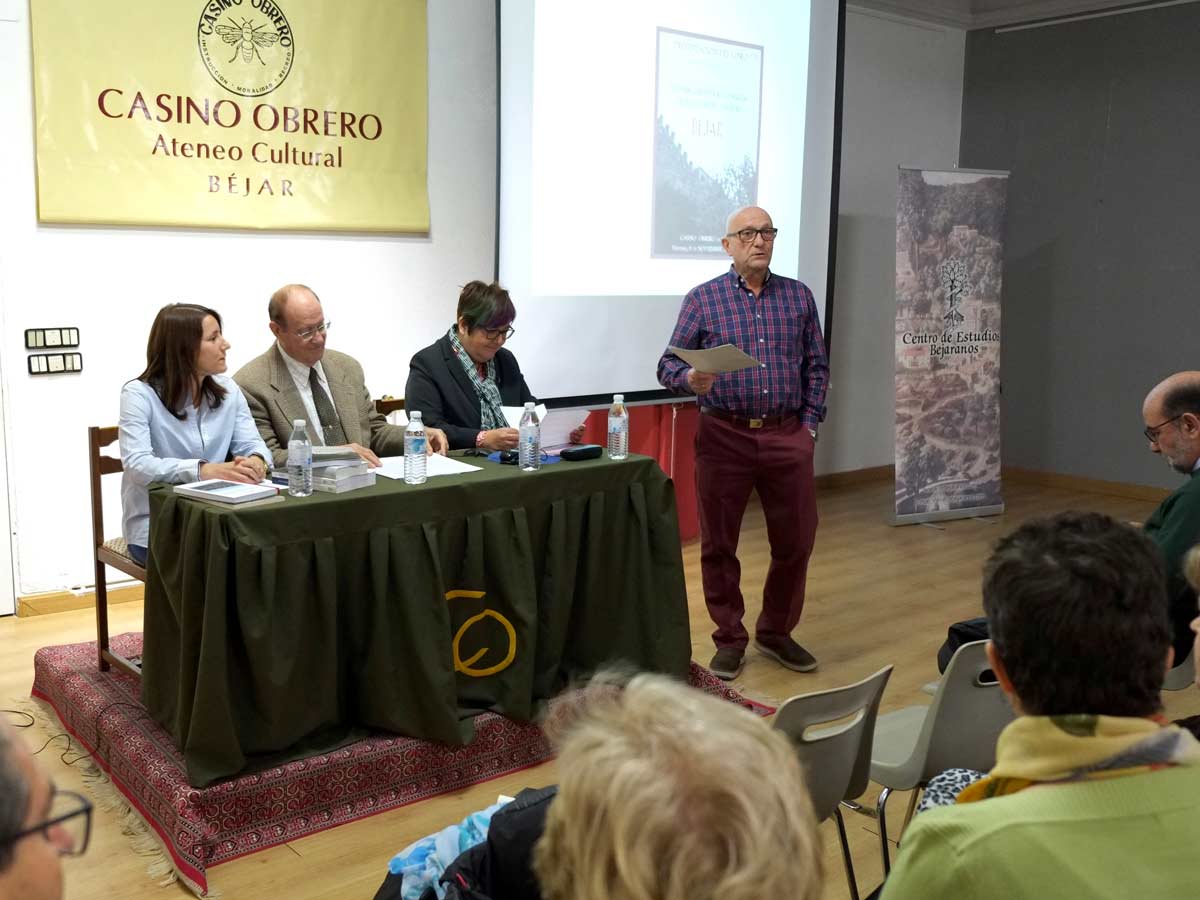 Ante una concurrida sala de exposiciones, el presidente del Casino Obrero, Francisco Javier Martín Peña hizo una breve presentación del acto, tras la cual intervino Josefa Montero García en su calidad de presidenta del Centro de Estudios Bejaranos. A continuación la secretaria del Centro, Carmen Cascón Matas, explicó la dinámica del acto.