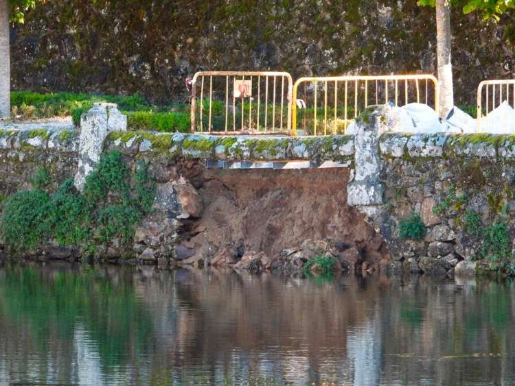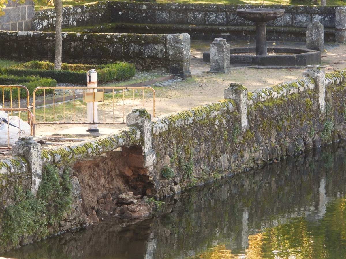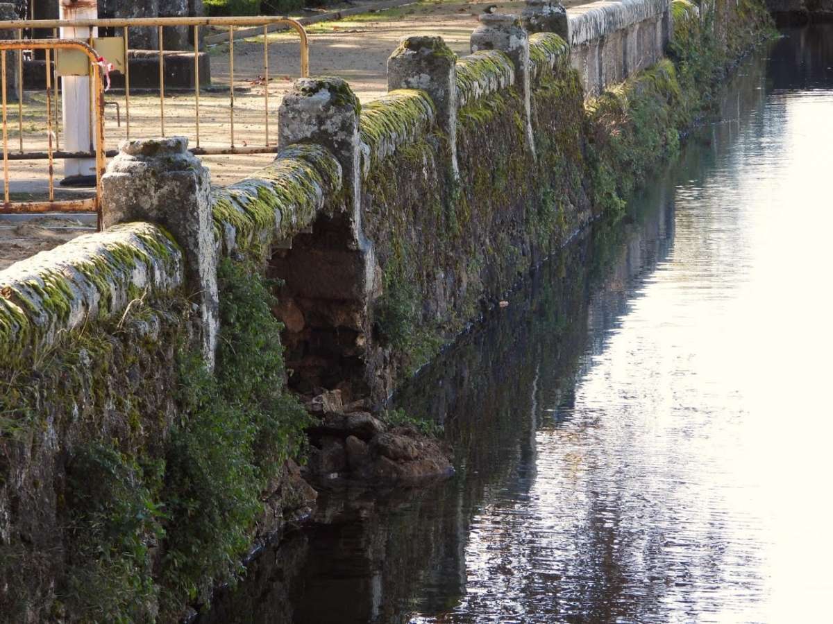 El pasado 23 de octubre, después de varios días de copiosas lluvias otoñales, se vino abajo un tramo de casi cuatro metros del pretil meridional del estanque