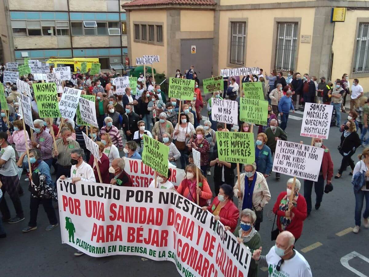 La plataforma en defensa de la Sanidad pública de Béjar hace, de nuevo un llamamiento a una manifestación masiva, sobre cuya organización se irá informando, “para que se respeten nuestros derechos y nuestra dignidad” Destacan, recordando que recientemente sacaron a la calle a más de 3000 personas. “Esta vez, más concienciados de que con nuestra salud no se juega y de que podemos revertir esta serie de situaciones discriminatorias, seremos más. oca luchar de nuevo. Rendirse nunca será una opción”, advierten.