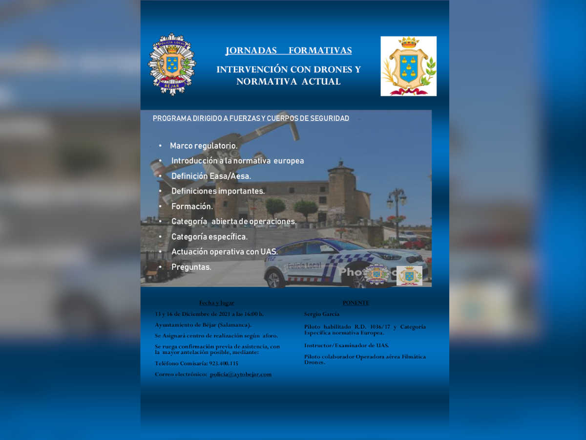 La Policía Local de Béjar organiza unas jornadas formativas, dirigidas a las fuerzas y cuerpos de seguridad, sobre intervención de drones y la normativa actual. Serán los próximos días 13 y 16 de diciembre.