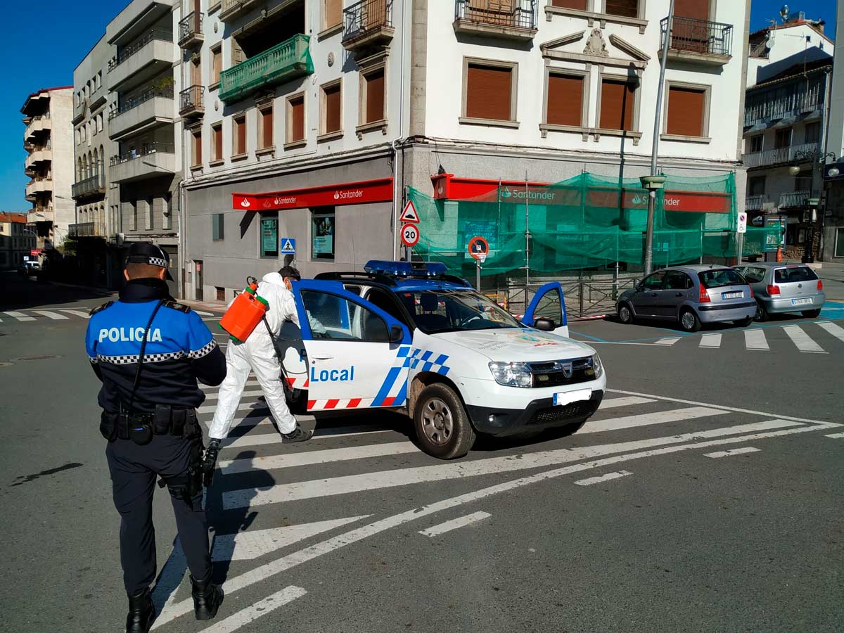 El Ayuntamiento de Béjar está realizando de forma continuada labores de limpieza y desinfección de los vehículos de la Policía Local, Policía Nacional y Guardia Civil.