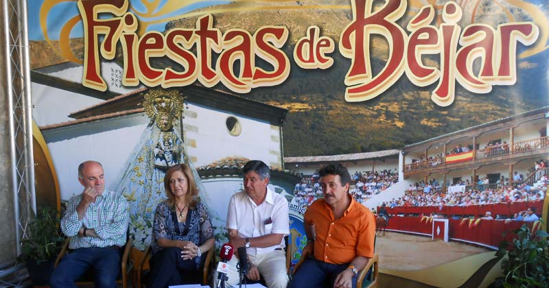 El Alcalde de Béjar, Alejo Riñones, junto a la Concejala de Cultura, Purificación Pozo, y los concejales de Medio Ambiente y Obras, Pedro Manuel Esteban y Alejandro Castelani, respectivamente han presentado el programa de fiestas de Béjar 2014.