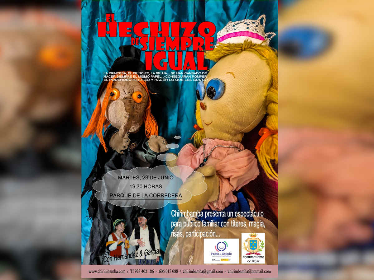 “El Hechizo de Siempre Igual” es un espectáculo ágil, variado y muy participativo en el que se habla de los distintos tipos de roles, la reivindicación de la diferencia y la búsqueda de la propia identidad. Mensajes que se transmiten de forma divertida y amena a todo el público.