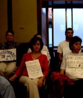 Representantes de la Federación de Padres de Alumnos de Béjar (Fapa) protestaron de forma silenciosa en el pleno de ayer, reivindicando mejoras en los institutos de Secundaria. El alcalde, Alejo Riñones, les advirtió con tomar medidas de no deponer la actitud de desplegar carteles en el transcurso del pleno, aunque finalmente desistió y los manifestantes estuvieron hasta su conclusión.
