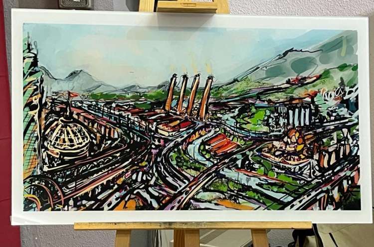 Uno de los momentos destacados fue la presentación de la cubierta de la revista, a cargo del artista bejarano Miguel Gosálvez Mariño. La ilustración titulada "Die Brücke" ("el puente" en alemán) representa una visión futurista e innovadora de Béjar, con énfasis en sus emblemáticas chimeneas. Gosálvez Mariño compartió un video que mostraba el proceso de creación y presentó la obra física al público.