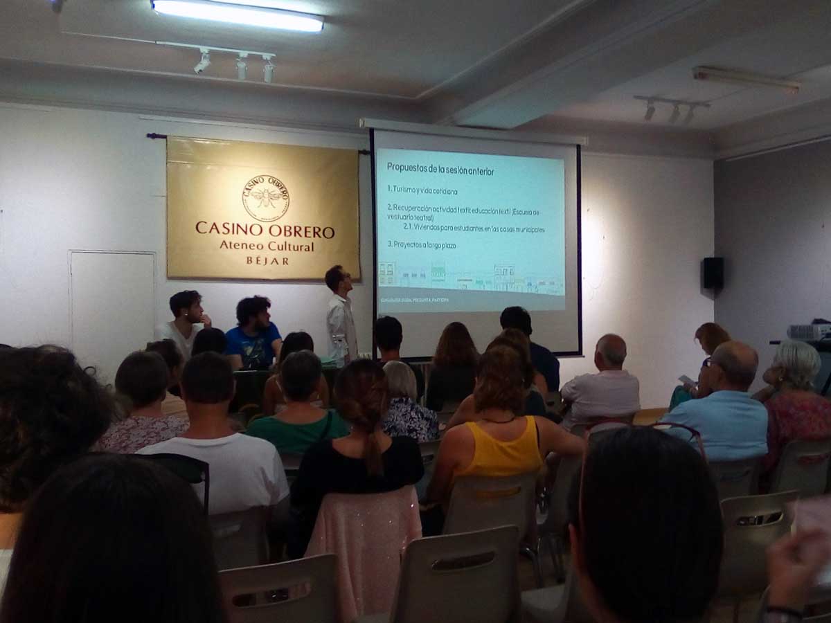 En la tarde del jueves tuvo lugar en la sala de exposiciones y conferencias del Casino Obrero de Béjar la charla coloquio organizada por la plataforma ciudadana Salvemos Béjar, la cual ha presentado un proyecto al concurso internacional de Arquitectura Richard H. Driehaus.