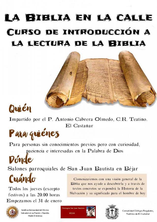 La Seráfica Hermandad del Divino Salvador en su Pasión y Nuestra Madre Dolorosa, la Comunidad de Padres Teatinos de El Castañar y la Parroquia de San Juan Bautista de Béjar, organizan un curso de aproximación a la lectura de las Sagradas Escrituras