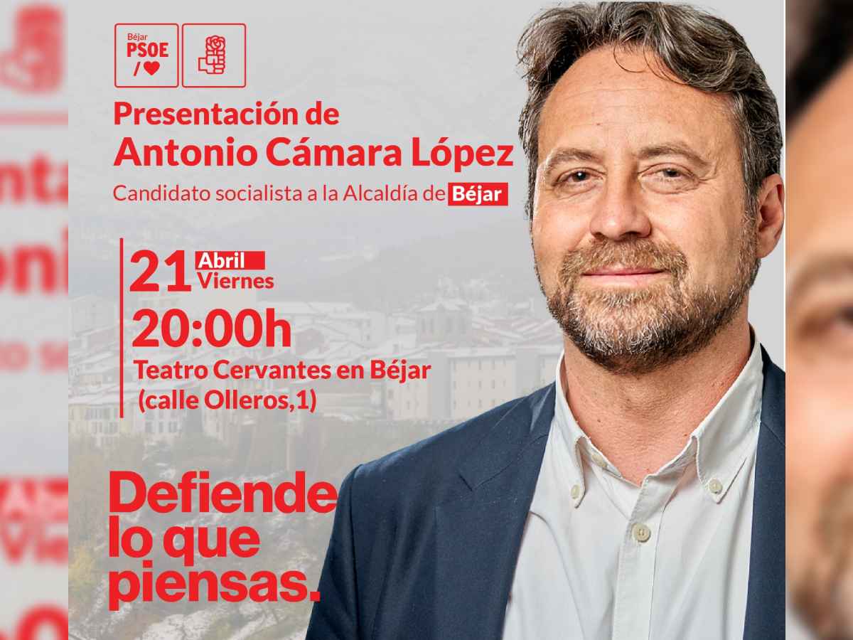 El próximo viernes 21 de abril, a las 20:00 horas, tendrá lugar la presentación de la candidatura de la Agrupación Socialista Bejarana a las elecciones municipales del 28 de mayo de 2023.