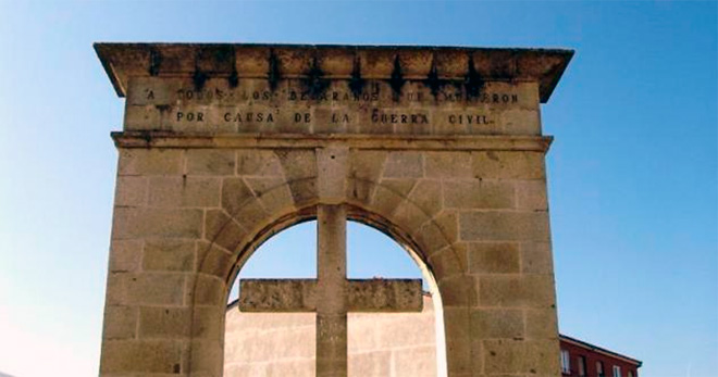 "El monumento a los caídos que estaba situado en el parque de El Murallón que contenía el arco del triunfo junto a la cruz de los caídos, es un recuerdo de la guerra civil que según la Ley de Memoria Histórica debe ser retirado"