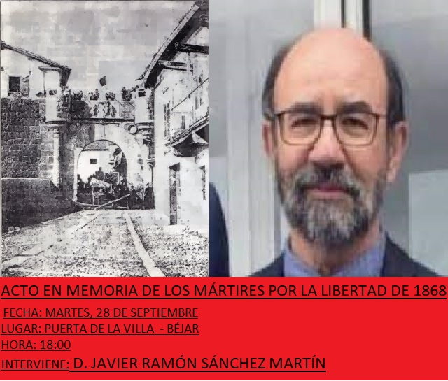 Los socialistas conmemoran los actos de un 28 de septiembre de 1868 en la que perdieron la vida 31 bejaranos, la mayoría vecinos del barrio de La Corredera y casi todos ajenos al enfrentamiento bélico entre el ejército isabelino y la milicia local. Salvo determinadas épocas, desde 1869, la ciudad de Béjar, encabezada por sus autoridades, ha rendido -mediante un acto religioso en el cementerio y una posterior procesión cívica- el tributo de respeto a los muertos de aquel día, a los que la memoria bejarana concedió para siempre el título de Mártires por la Libertad, tal y como recuerda Carmen Cascón en su blog Pinceladas de Historia Bejarana.