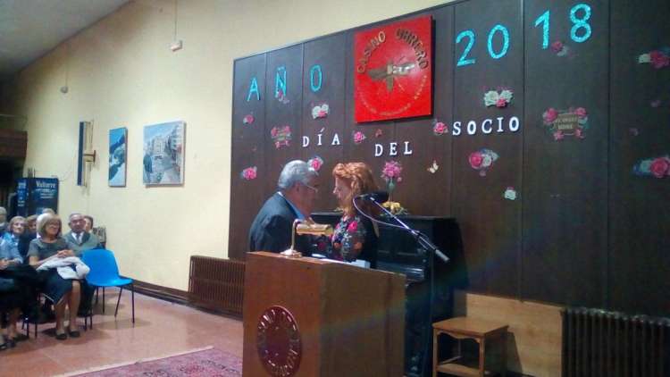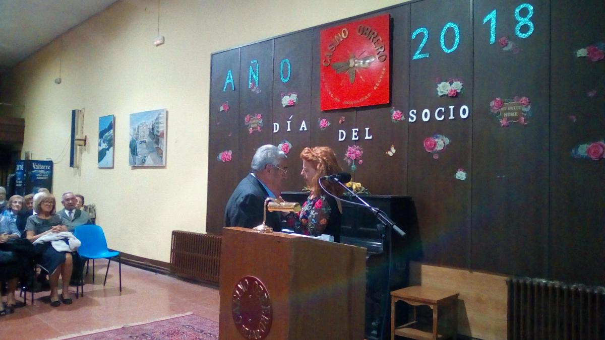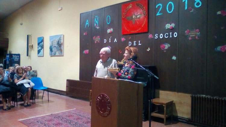Seguidamente, ya en el salón principal, la presidenta dedicó unas emotivas palabras a ambos socios, tras lo cual les fueron impuestas las insignias del Casino Obrero. Tanto Juan José como Estanislao dedicaron unas palabras de agradecimiento por el homenaje y desearon una larga vida al centro.