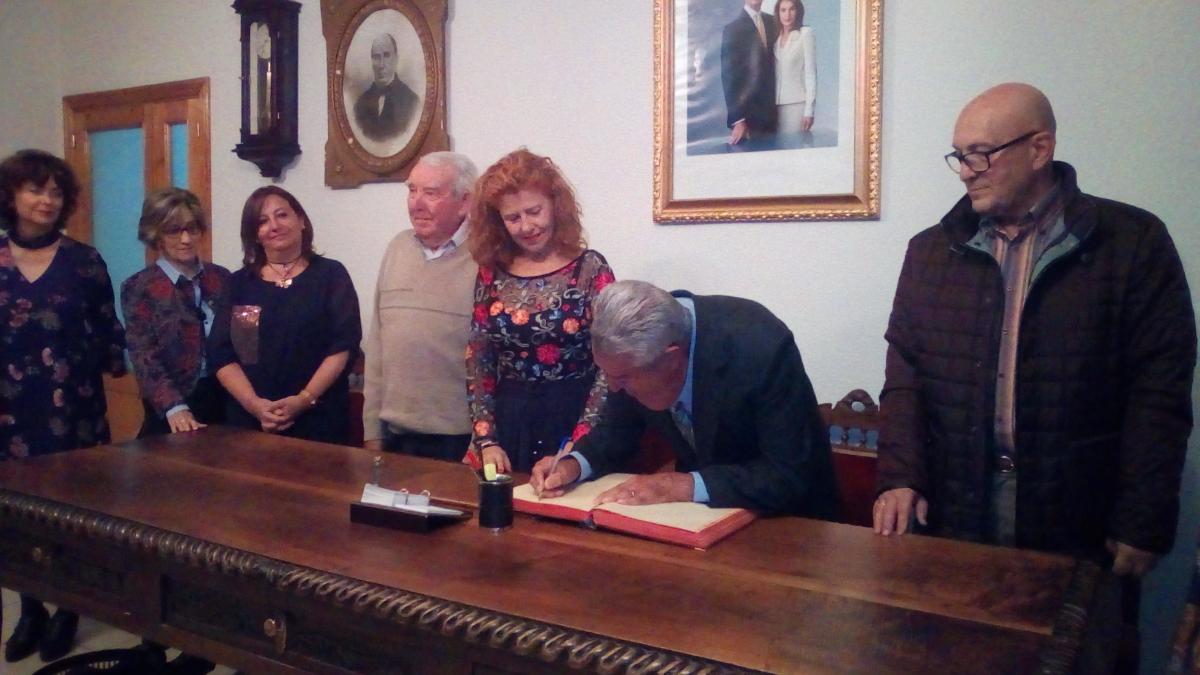 Ambos socios fueron recibidos por parte de la Junta Directiva encabezada por Carmen Carpio en la secretaria del centro donde firmaron en el Libro de Honor del ateneo bejarano.