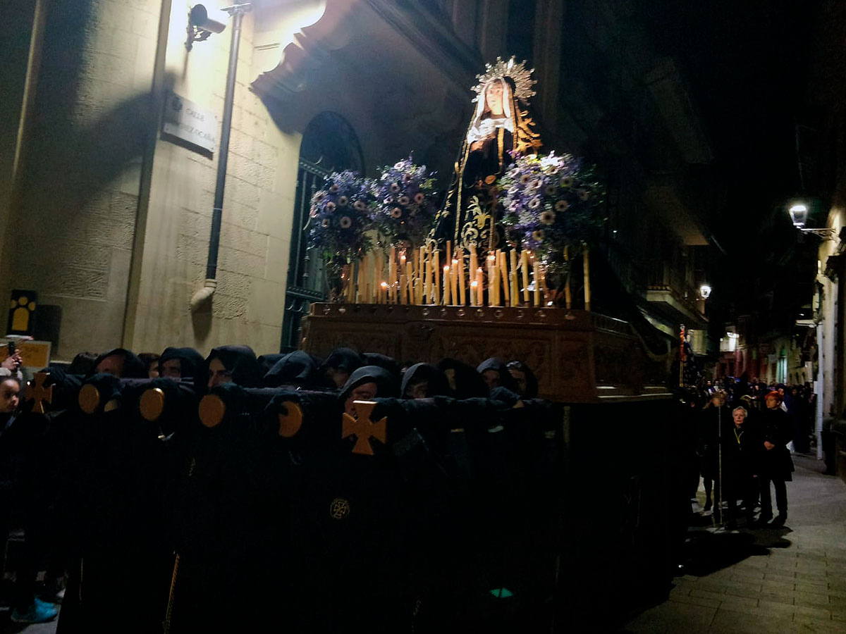 En la jornada de ayer, Martes Santo, pudimos ver procesionar una de las tallas más icónicas de la Semana Santa bejarana, Nuestra Señora de La Soledad, escoltada por mujeres ataviadas de mantilla, peineta y riguroso luto. Se trata de una de las procesiones más esperadas por los cofrades de la Santa Vera Cruz, que ataviados de negro portan a la Virgen desde la Iglesia de San Juan.