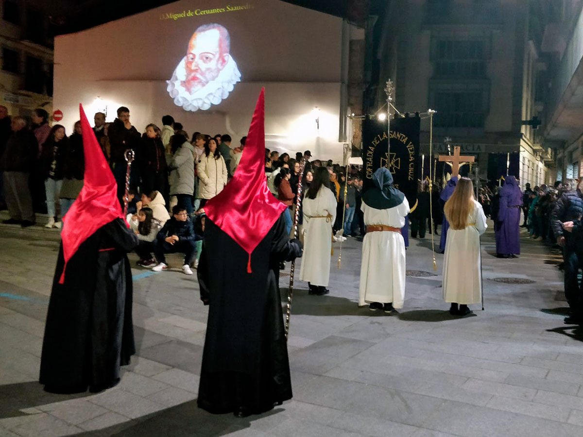 Tras la salida de La Borriquilla y la Procesión Penitencial de la Seráfica Hermandad del Divino Salvador el pasado domingo, el lunes fue el turno del viacrucis de la Cofradía de la Santa Vera Cruz que representar las catorce estaciones en las cuales se relata lo que experimentó y sufrió Jesús desde el momento de su condena hasta su sepultura.