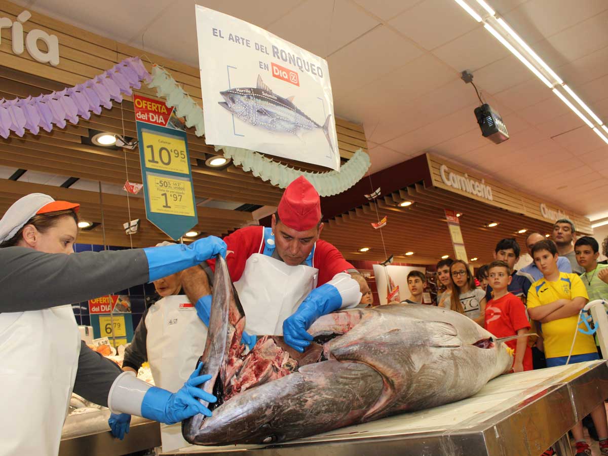 Grupo DIA celebrará durante las próximas semanas varias jornadas profesionales de pescadería en las que varios expertos realizarán el acto del ronqueo a un atún rojo de más de 150 kilos de peso. El acto del ronqueo hace referencia al despiece tradicional del atún y al sonido característico del cuchillo al pasar por cada una de las espinas del animal. Con este corte, se extraen las distintas partes aprovechables del atún, que luego se utilizan para el consumo fresco y la realización de productos elaborados.