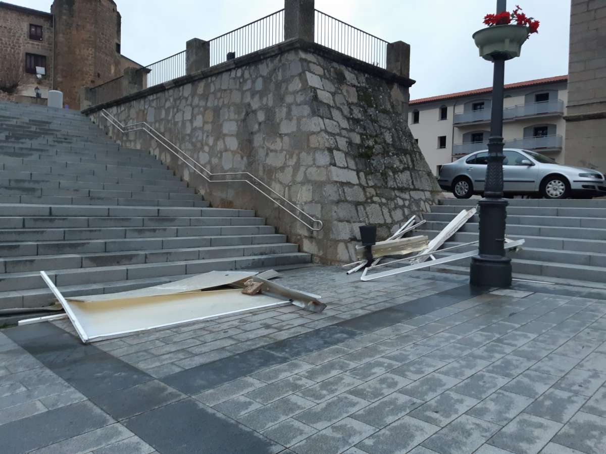 En Béjar, parte de la cubierta lateral de hospital se desprendía por la fuerza del viento y causaba importantes daños en un vehículo aparcado en la zona. La iluminación de la mayoría de las calles de Béjar ha sido retirada por temor a que esta pudiera desplomarse contra el suelo con el consiguiente peligro para los viandantes. En el parque ramas de los árboles se desplomaron sobre los paseos y en la Plaza Mayor elementos de las fachadas y carteles volaron, y cayeron sobre la plaza.