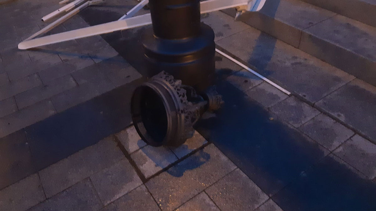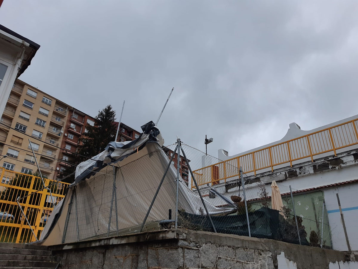 Parte de la cubierta del colegio de La Antigua se ha volado, mientras que los alumnos del IES Ramón Olleros se han tenido que quedar en sus casas debido a que también se ha volado parte de la cubierta.