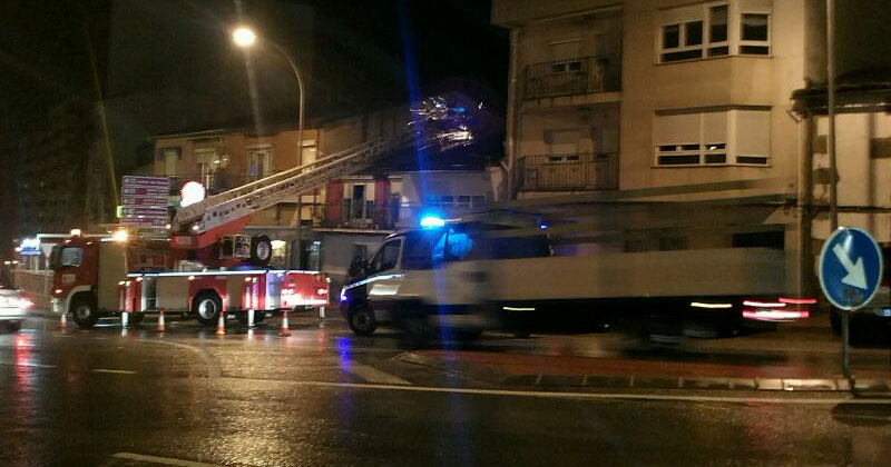 Intensa actividad de los bomberos de Béjar para atender emergencias por la climatología adversa. Un pino caído sobre cables de alta tensión fue el responsable de que parte de la ciudad se quedara sin luz