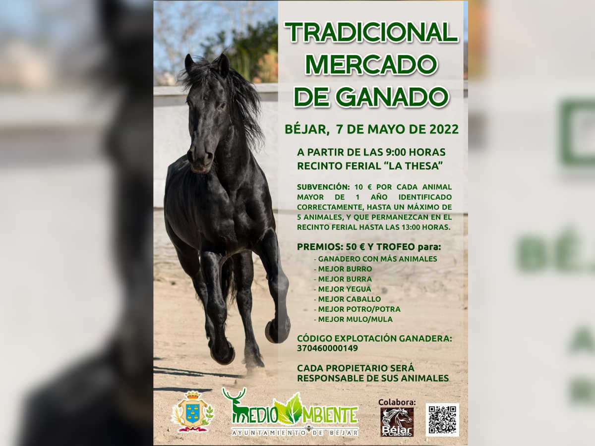 El Ayuntamiento de Béjar subvenciona con 10 euros cada animal mayor de 1 año identificado correctamente, hasta un máximo de 5 animales, y que permanezcan en el recinto ferial hasta las 13:00 horas.