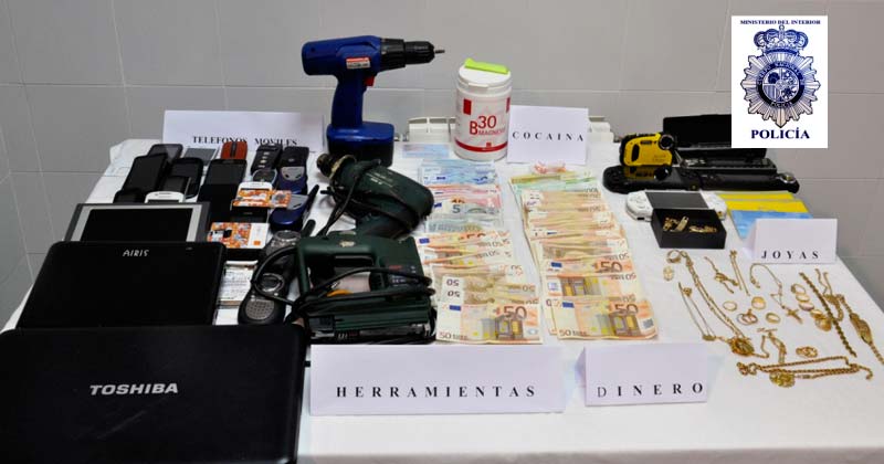 En los registros se contó con la colaboración de agentes con perros de la Unidad de Guías Caninos de la Jefatura Superior de Castilla y León, interviniendo en el transcurso de los mismos una pequeña cantidad de cocaína, joyas, ordenadores portátiles y numerosos terminales de telefonía móvil, entre otros efectos, además de cinco mil euros (5.000 €) en billetes de distinto valor.