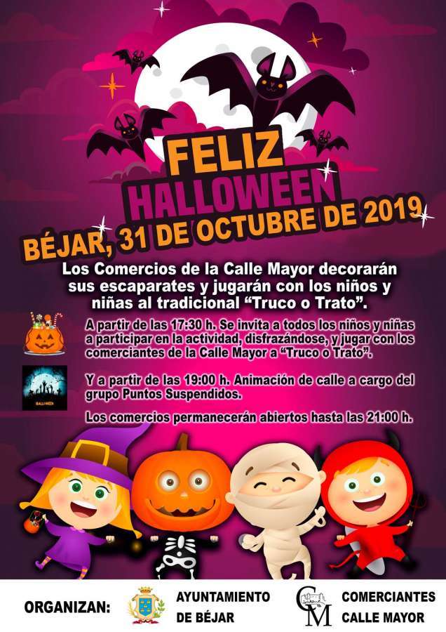 Este jueves, 31 de octubre, el Ayuntamiento de Béjar y los comerciantes de la calle Mayor han organizado una serie de actividades de Halloween “para que las niñas y niños de Béjar salgan a la calle y puedan disfrutar de esta fiesta”.