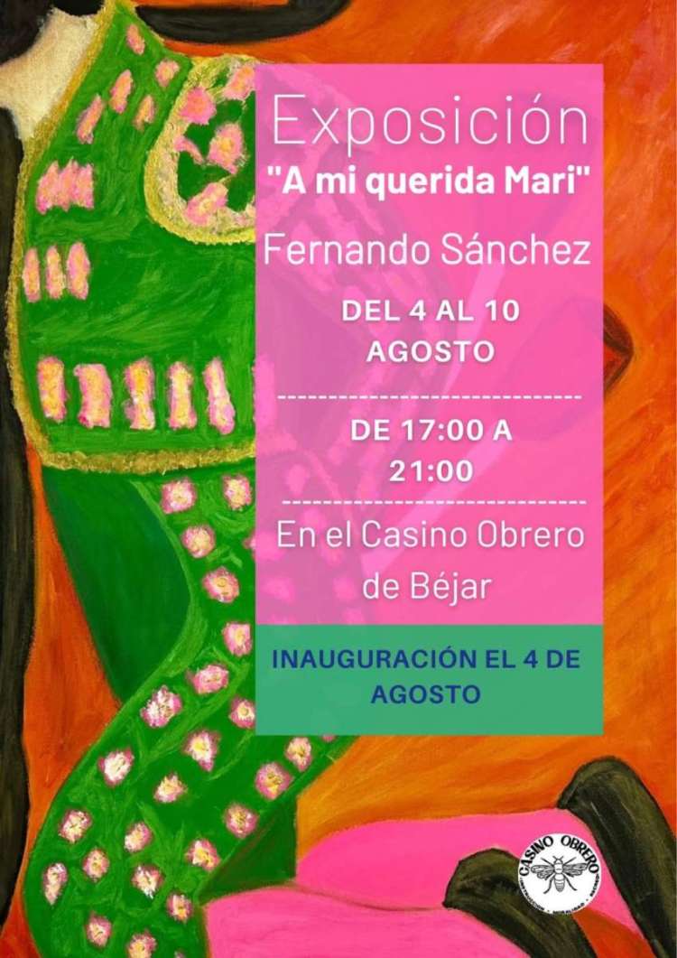 La ciudad de Béjar acoge en estos días los últimos compases de la exposición “A mi querida hermana Mari”, del artista Fernando Sánchez, que puede visitarse hasta el próximo 10 de agosto en el Ateneo Cultural del Casino Obrero. La muestra permanece abierta en horario de 17:00 a 21:00 horas, y se presenta como una propuesta singular en la que convergen la pintura, la poesía y la memoria personal.