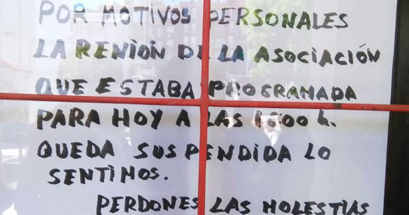 Este colectivo de vecinos ha tratado por todos los medios de que esta reunión no se celebrase en modo alguno en la fecha prevista, teniendo en cuenta la proximidad de las elecciones municipales, pero a pesar de las numerosas gestiones realizadas, esta Sra. persistió en su actitud que ha llevado a la consecuencia por todos conocida y que aquí queremos poner de manifiesto, de su incumplimiento una vez más de los anunciado, encontrándonos el pasado sábado 16 de mayo ante la insólita y despreciable actitud de no presentarse a esta Junta, ¡convocada por ella misma!, y notificar la suspensión mediante un panfleto colocado a la puerta de la Asociación (CEIP-Béjar) sin tener en cuenta siquiera la asistencia de sus convecinos, de los representantes de FEVESA-Salamanca (Presidente y Vicepresidente) y de los periodistas convocados a tal fin, demostrando así una vez más sus total desprecio por las leyes que rigen nuestra Asociación y por los allí presentes.