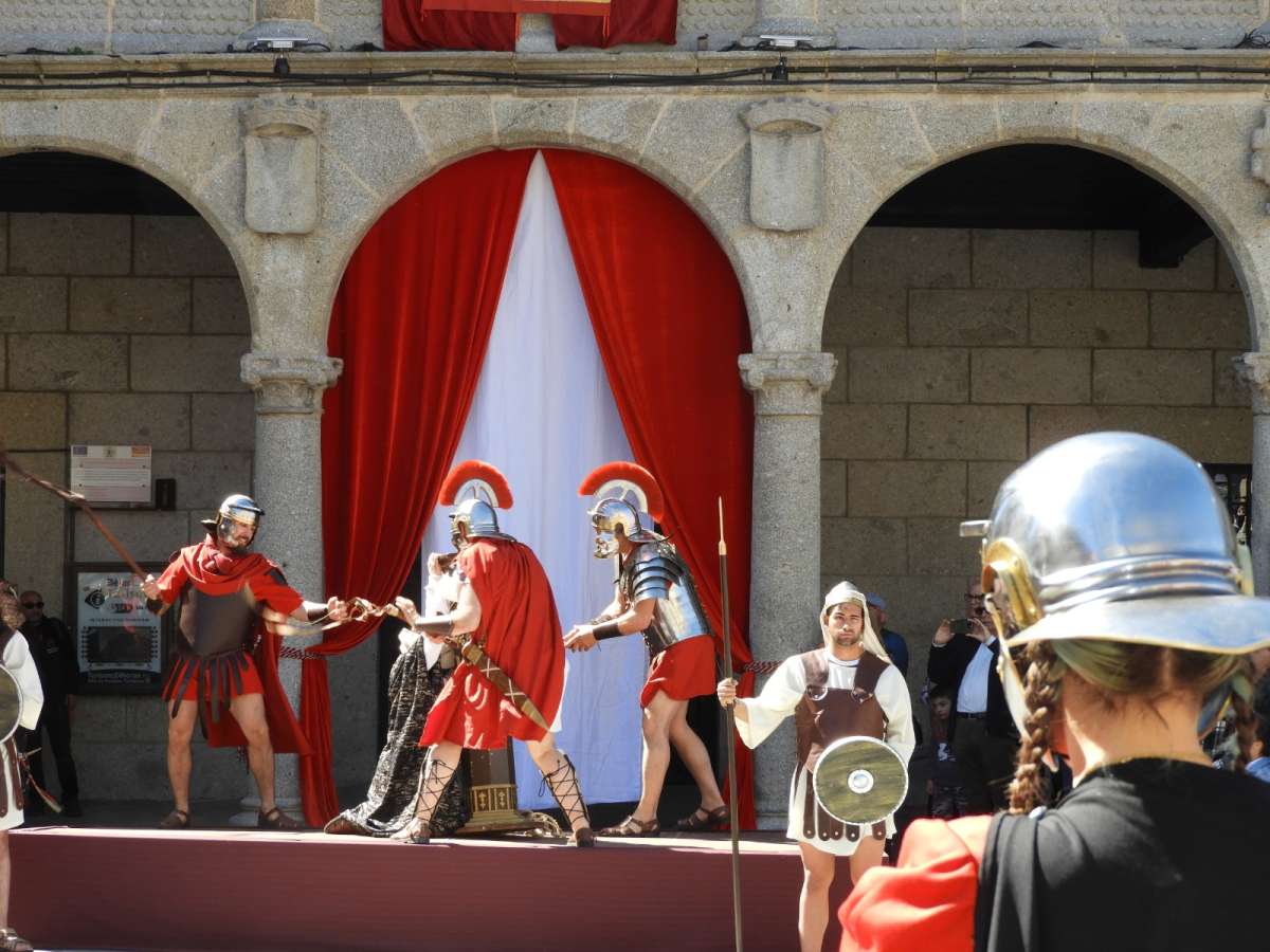 La escenificación comenzó como es habitual con el desfile de la centuria romana y lectura del edicto. Para continuar con el "Prendimiento en el Huerto de los Olivos" y "la condena del Sanedrín". Tras la lectura, la comitiva se dirigió hasta el explanada frente al al Palacio Ducal, donde tuvo lugar la dramatización de la sentencia.
