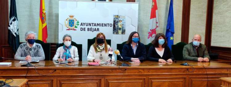 Comienzan los actos religiosos vinculados a la Semana Santa en Béjar. La concejala de Cultura del Ayuntamiento, Ana V. Peralejo, acompañada por las representantes de la cofradías y hermandades de la ciudad han presentado el programa previsto para esta Semana Santa 2022, después de no poder celebrarse con actos públicos durante dos años por la pandemia. La Hermana Mayor de la Hermandad de Jesús el Nazareno y Nuestra Señora de las Angustias, Olga García, encargados de organizar el pregón de Semana Santa de este año; la Cofradía de la Santa Vera Cruz, Ángela González y Conchi Sierra, y Mercedes Soria, Hermana Mayor de la Seráfica Hermandad del Divino Salvador en su Pasión y Nuestra Madre Dolorosa, han representado a cada una de las hermandades y cofradías.