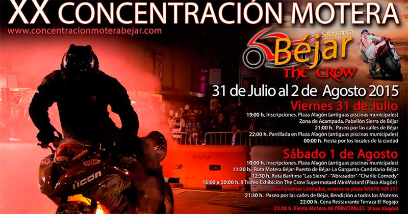 - 16:00 a 20:00 h. II Trofeo Exhibición The Crow Supermotard MiniMotard (Plaza Alagón) Inscripciones Limitadas reserva tu plaza Tel.676 109 211