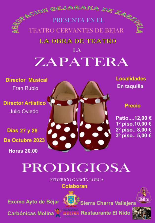 La concejala de Cultura, Purificación Pozo, acompañada de miembros de la Agrupación Bejarana de Zarzuela, ha anunciado la presentación de su nueva obra, "La Zapatera Prodigiosa" de Federico García Lorca.