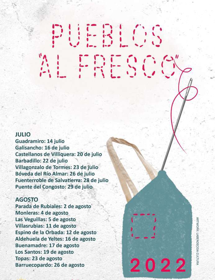 Los municipios participantes en “Pueblos al Fresco 2022” han sido: Guadramiro, Galisancho, Castellanos de Villiquera, Barbadillo, Villagonzalo de Tormes, Bóveda del Río Almar, Fuenterroble de Salvatierra, Puente del Congosto, Parada de Rubiales, Monleras, Las Veguillas, Villasrubias, Espino de la Orbada, Aldehuela de Yeltes, Buenamadre, Los Santos, Topas y Barruecopardo.
