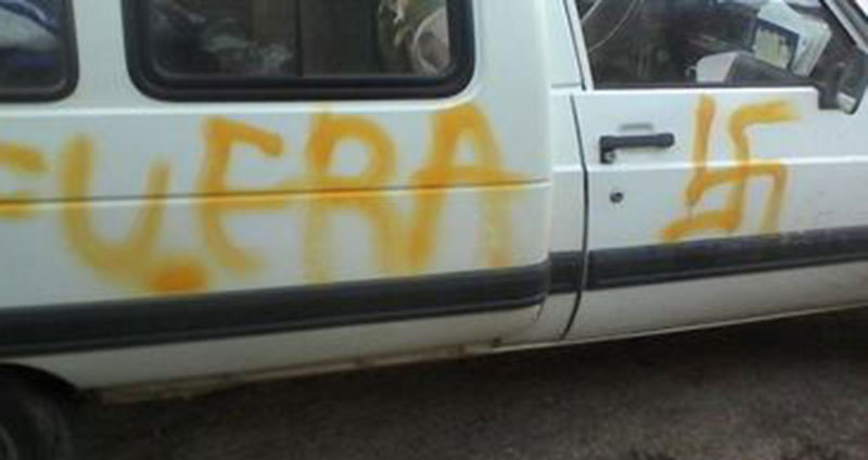 A la conclusión de la misma, el coche de varios asistentes apareció pintado con símbolos nazis y el mensaje “Fuera” . En la jornada del domingo se procedió la denuncia de este suceso ante el cuartel de la guardia civil de La Alberca, ya que en la tarde de este sábado se encontraba cerrado.