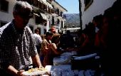 Numerosas personas participaron ayer en el convite municipal a base de patatas volteás y torreznos que el Ayuntamiento de Candelario regalaba a todos cuantos se acercaban a la mesa del reparto. Fernando Pulga , como él mismo se denomina, cocinó el manjar ayudado por varias personas. Los peñistas que colaboran con la Concejalía de Festejos atendieron al público.