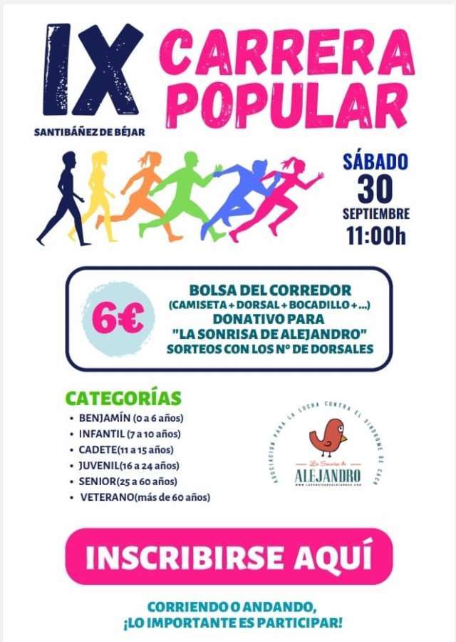 El sábado 30 de septiembre, Santibáñez de Béjar se prepara para una nueva edición de su carrera popular solidaria, una prueba de 5 km a favor de La Sonrisa de Alejandro.