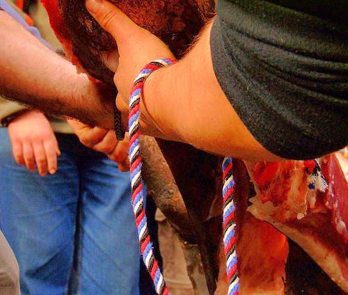 Los pequeños observan perplejos la ausencia de vida en el animal sacrificado, conjurado, para calmar el hambre en el pasado. Muerto para recordar el tiempo en que nuestros padres comulgaban con la tierra. Algunos incluso se atreven a acercarse y palpar la carne quemada para comprobarlo. Madrugar nos costó a los urbanitas, pero había que hacerlo, nos esperaba un ritual, una cita con la tierra, con las tradiciones, la muerte, la vida y el alimento. Sotoserrano tenía matanza tradicional y yo un compromiso ineludible y placentero con mi Sierra de Francia.
