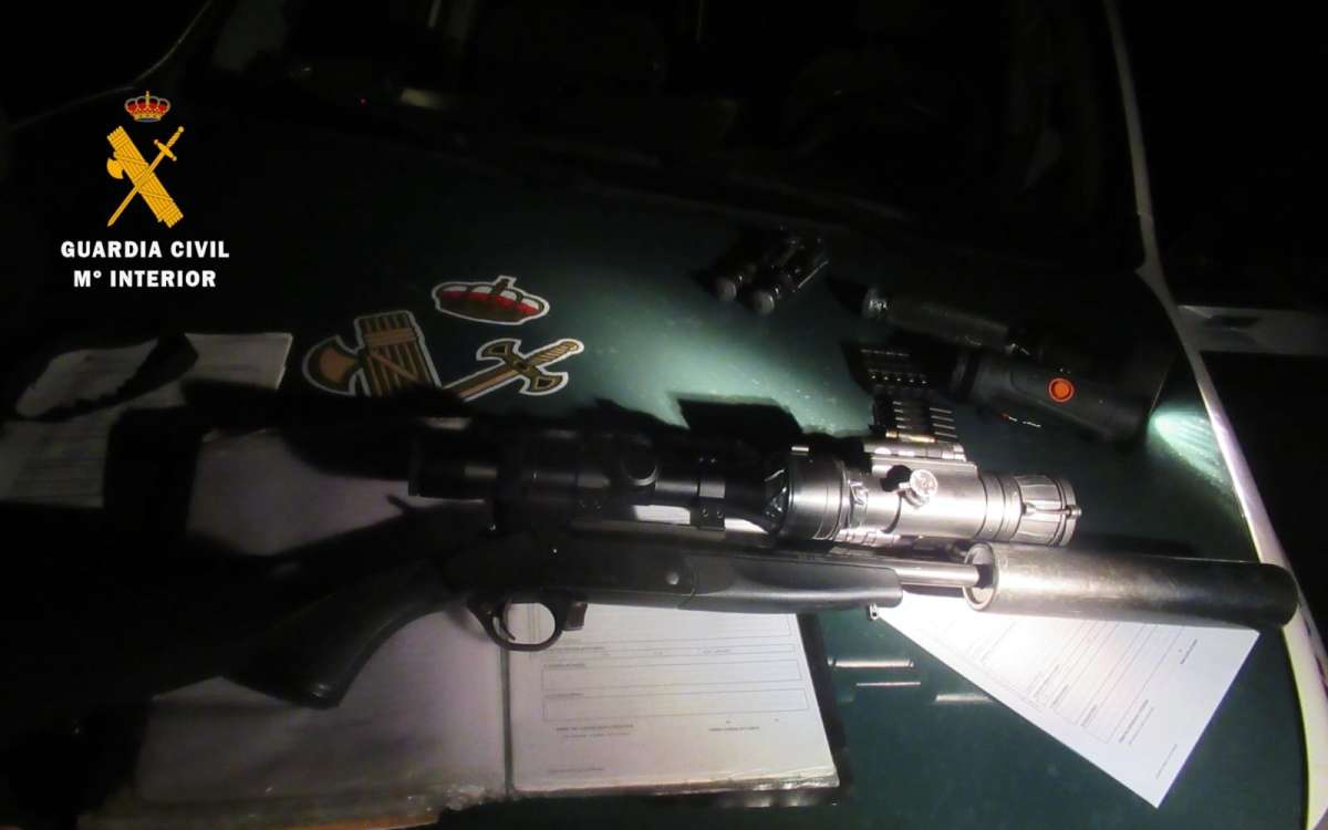 Durante la actuación, la Guardia Civil se intervino de un rifle municionado, con silenciador y mira nocturna acoplados, y un visor térmico.
