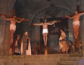 La representación se realiza al atardecer. Se representan en este montaje los últimos días de la vida de Cristo. El texto teatral LA PASIÓN, es una adaptación realizada por el grupo CATEJA. Es un montaje en el que a lo largo de estos más de 25 años se han ido introduciendo mejoras técnicas hasta conseguir un verdadero espectáculo de luz y sonido. Es por ello también uno de los más costosos de cuantos realizamos. El texto de La Pasión es una obra en tres actos que recrea los momentos más importantes de los últimos días de la vida de Jesús y su pasión y muerte.