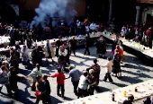 Por evidentes cuestiones sanitarias, la carne del cerdo sacrificado no se puede degustar el mismo día. Pero el consistorio y la empresa de embutidos y jamones Marcos y El Charro dispusieron de más de 400 kilos de carne de cerdo y otros alimentos de la matanza para agasajar a los visitantes y vecinos del municipio en la multitudinaria comida que se celebró en la plaza.