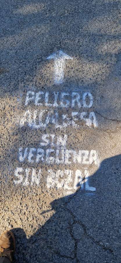 En este orden de cosas, cabe destacar la aparición de algunas pintadas anónimas en la carretera en la entrada y salida del pueblo, con la lectura: “Peligro, alcaldesa sin vergüenza sin bozal”.