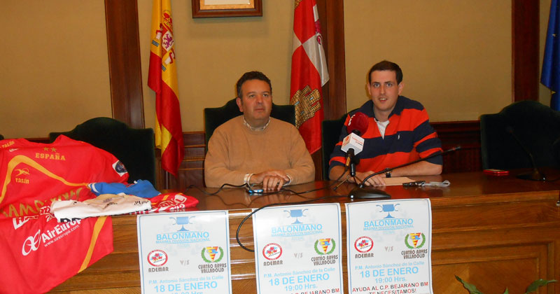 El Concejal de deportes, Raúl Hernandez, y representantes del Club Polideportivo Bejarano de Balonmano, Luis Hernández, presentaron el partido de máxima división que se disputará en Béjar el próximo sábado, 18 de enero, a las 19:00 horas entre el Ademar de León y el Cuatro Rayas BM Valladolid.
